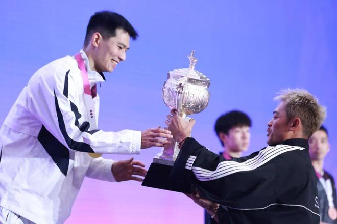这场在双左手间展开的林丹杯之争,悬念拉满。两登冠军宝座的赵俊鹏在开局频繁出错,0比4落后高渐宽。随后,在沉着应对中赵俊鹏展现出更强的执行能力,不仅追平比分更将分差不断拉开,以15比9先拿一分。第二局中,双方在网前、后场耐心周旋,但凭借艺高人胆大的心态,赵俊鹏以15比8再下一城。最终,继去年他在新昌捧杯后,赵俊鹏于福地写就了自己林丹杯的“三冠王”。赛后,赵俊鹏说:“我很开心能在林丹杯拿到第三冠,这也是我在新昌的第二冠,感谢对手高渐宽,一起奉上这么精彩的决赛。全运会后我完成了自己的婚礼,赛前也有未知,但是我相信只要努力坚持了,一定会在你想要的时候证明自己。”