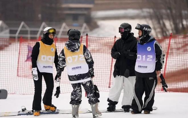 SRA滑雪场联盟2025—2026“冰雪丝路杯”粉雪联赛,精英赛——庙香山温泉滑雪度假区比赛现场,参赛选手交流比赛技巧。杨浩 摄
