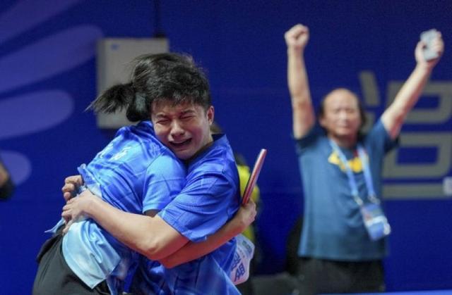 12月9日,在全国第十二届残疾人运动会暨第九届特殊奥林匹克运动会乒乓球XD13混合双打金牌赛中,来自广西的罗振邦、黄梦萍这对“夫妻档”组合以3比1战胜山东队的王聪、王哲,历史性地摘得金牌。比赛结束后,夫妻两人紧紧相拥。